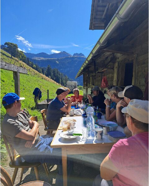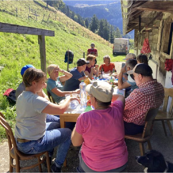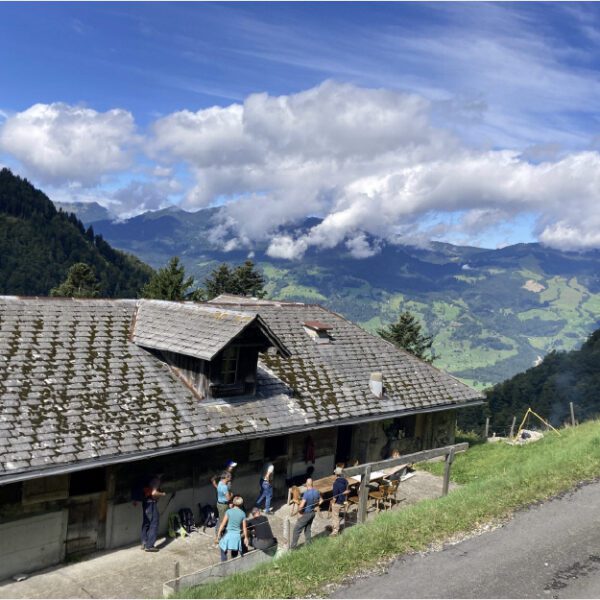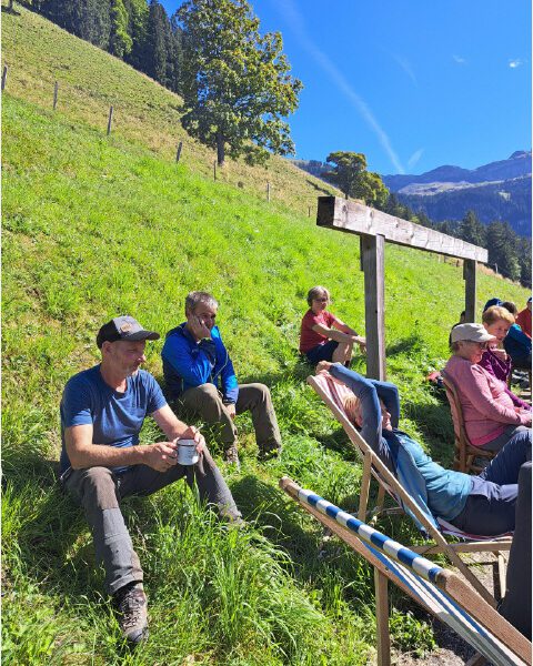 Beim Hausverlassen am Morgen hat es noch geregnet, obädirä von Bachswengen über den Meisen und Brandegg sei es noch sehr frisch gewesen. Dankbar genossen dann alle die wärmenden Sonnenstrahlen und geselligen Stunden im Rindel vor der Hütte.