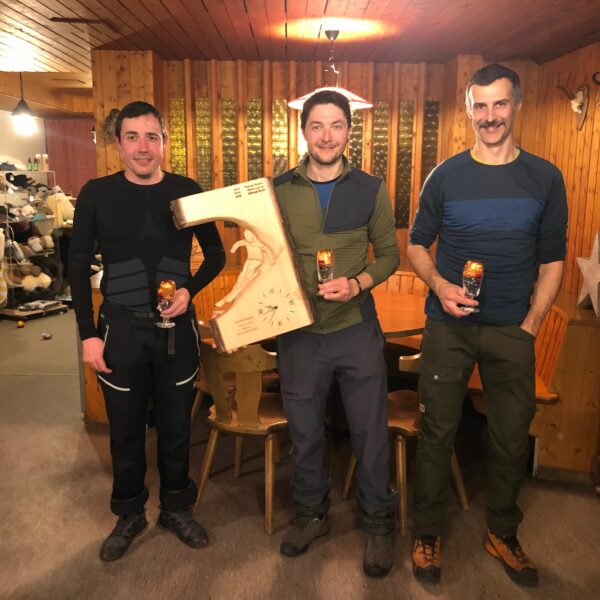 Das Mörli präsentierte sich in Renntauglicher Winterstimmung. Bei der Startnummernausgabe trudelten nach und nach die FSK-ler ein. Schlussendlich machten sich 15 Rennfahrerinnen und Rennfahrer auf zur Besichtigung. Der Laufsetzer hinterliess zwischen den Toren eine Snow-Quad Spur. Da die Temperaturen noch ein bisschen fielen, war eben diese Spur sehr hart geworden. So wurde mehrmals besichtigt und gleichzeitig die Spurrillen rausgerutscht. Der Start der Kinder verzögerte sich ein bisschen, da die Zeitmessung noch nicht bereit war. Daher wurde mit den Kleinen ein kurzes Aufwärmen gemacht. Die Herren stärkten sich derweil mit einem Schluck aus dem Stock. Nun noch die Skischuhe zuschnallen und die Stöcke einschlaufen und los geht’s. Die Rutscherei bewirkte nicht viel, daher rumpelte es ordentlich bei der Fahrt. Dennoch kamen alle heil ins Ziel. Bei den Kindern gewann Halter Max, bei den Damen Furrer Muriel und bei den Herren Jost Andreas. Bereits im Vorfeld zeichnete sich ein spannendes Duell bei Halter’s ab. Nun war Max das erste Mal schneller als sein Vater, und dies um 0.02 Sekunden. Dennoch hat Michi uns freundlich empfangen im Bergrestaurant Mörlialp und der gemütlichen Runde bei Pommes und Gulaschsuppe stand nichts im Weg.