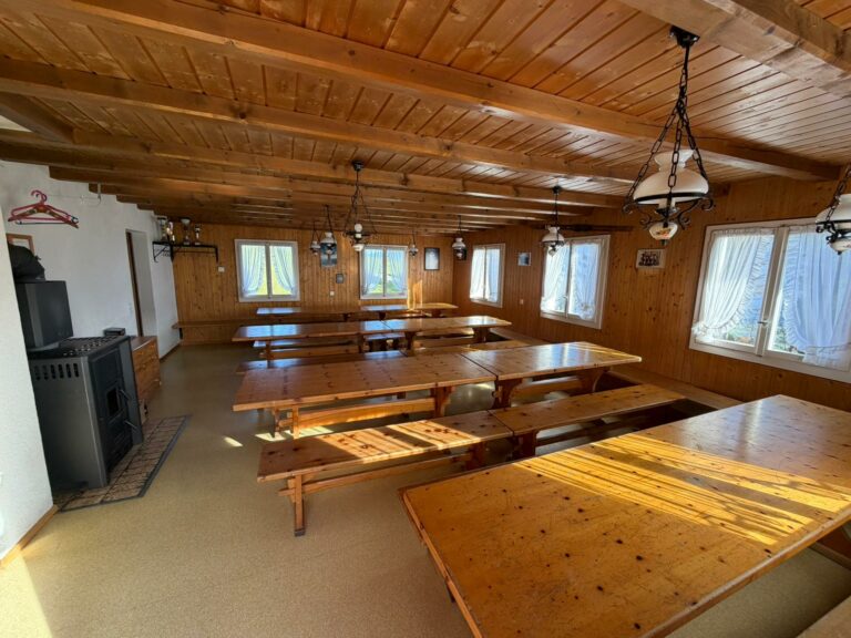 Mit ausreichend Parkplätzen für ca. 12 Autos ist die Anreise ein Leichtes. Die grosszügige Gruppenunterkunft bietet Platz für 50 Personen und ist ideal für Club- und Privatanlässe. Der geräumige Aufenthaltsraum lädt zum geselligen Beisammensein ein, während die bestens ausgestattete Küche für das leibliche Wohl aller Gäste sorgt.