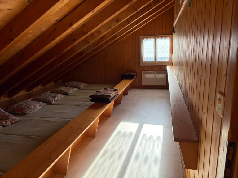 Im oberen Stock stehen drei Räume mit Massenlager für 20 Schlafplätze bereit. Selbstverständlich sind WC und Waschanlagen vorhanden. Ein Keller und ein Holzlager für die heimelige Holzheizung vervollständigen das Angebot. Der grosszügige Vorplatz mit einem gemütlichen Cheminée lädt dazu ein, die Natur und die atemberaubende Aussicht auf Giswil in vollen Zügen zu geniessen.